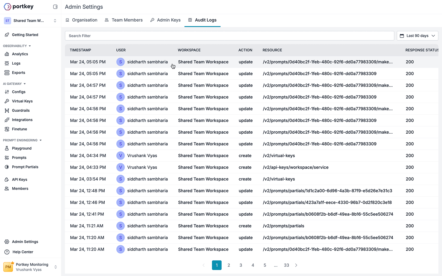 For security-conscious organizations, Portkey provides comprehensive audit logging of all Admin API operations. These logs give you complete visibility into administrative actions: